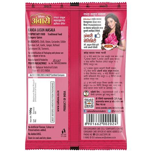 Kanda (Onion) Lasun (Garlic) Masala A Zesty Blend Of Onion & Garlic To Add Spice & Flavour To Your Dish. A Must For Cooking Maharashtrian Cuisines. Solution For Everyday Tasty Food.Used For Preparing Range Of Spicy Vegetables With Or Without Gravy Like Stuffed Bhendi (Lady Finger), Stuffed Brinjal, Batata (Potato) Rassa (Gravy), Missal, Etc. Or Curries Of Chicken, Mutton, Egg Etc
