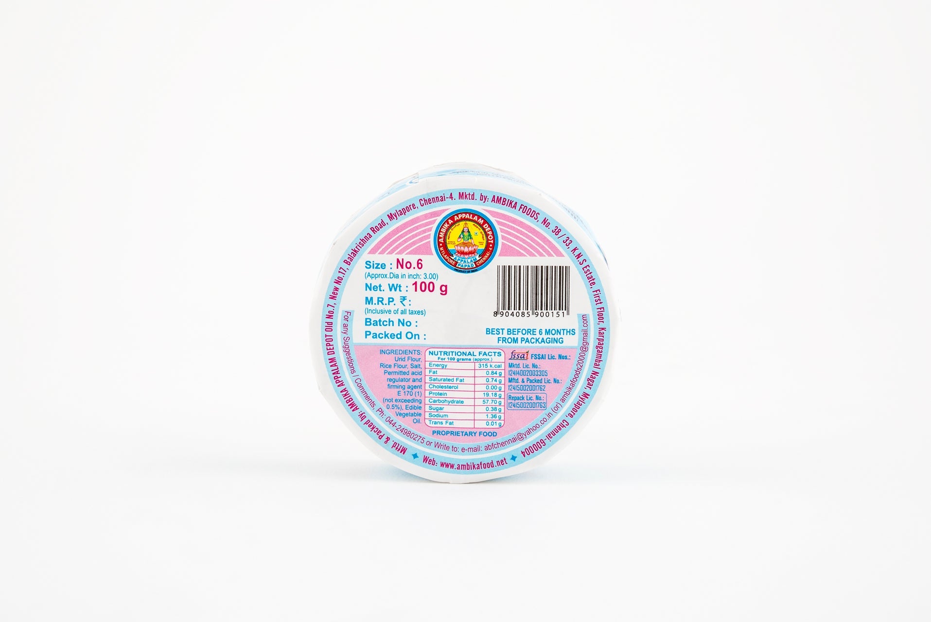 Name and Complete Address of the Manufacturer: Ambika Appalam Depot, 25. Dr. Nair Road Chennai-600017,Fssai: 12413002001778