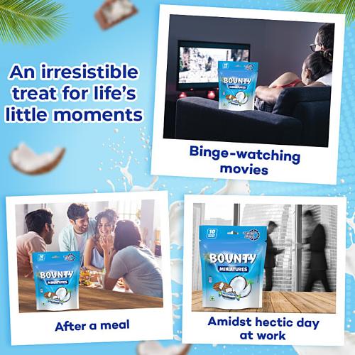 PACK CONTENT: This Bounty Miniatures Pouch contains 13 coconut chocolate treats inside MADE OF COCONUT: Enjoy moist & tender coconut covered in a thick milk chocolate coating MADE OF COCONUT: Enjoy moist & tender coconut covered in a thick milk chocolate coating TROPICAL DELIGHT: These miniature chocolates offer irresistible bites full of rich creamy texture PERFECT SNACK: Bounty chocolate can be enjoyed as a post-meal treat or a leisure time snack