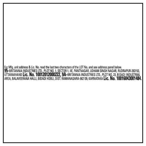 Name and Complete Address of the Manufacturer: Britannia Industries Ltd., Plot No. 1, Sector 1, Iie, Pantnagar, Udham Singh Nagar, Rudrapur-263153,Fssai No.10015043001129.10012012000222.100112042000149.100112043000218