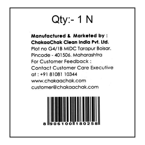 Name and Complete Address of the Manufacturer: Chakaachak clean India Pvt Ltd. Shree Rajlaxmi High Tech Textile Park, Bldg No-N2/A, Sonale Village, Near Mumbai Nashik Highway, Bhiwandi- 421304