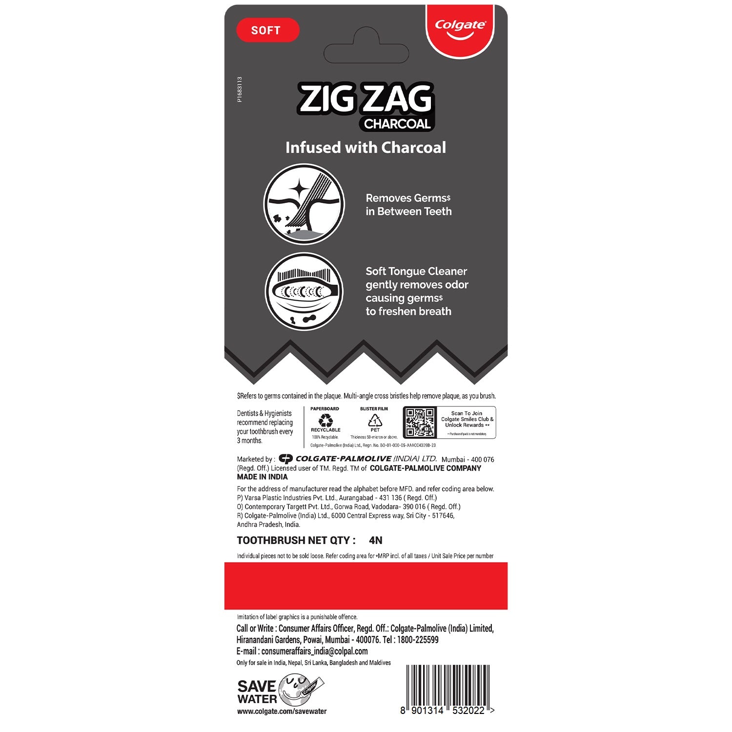 Colgate Zig Zag Black Toothbrush Soft 4 pcs