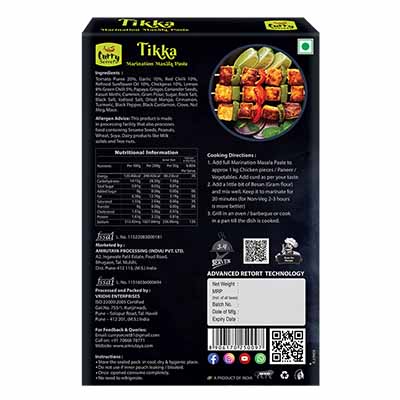 Ready To Cook (RTC), Tikka Marinations, Recpie for both Vegetarian & Non-Vegetarian dishes for affordable hasslefree cooking in minutes, with No Preservatives, No Artificial Colors, No Added Flavours, Serves 3-4 People an product with excellent shelflife,