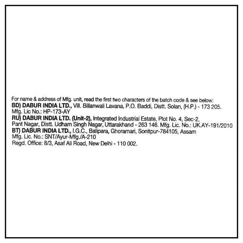 Name and Complete Address of the Manufacturer: Dabur India Ltd. Plot No-22, Site 4, Sahibabad, Sahibabad Industrial Area, Sahibabad Industrial Area, Ghaziabad, Uttar Pradesh 201010