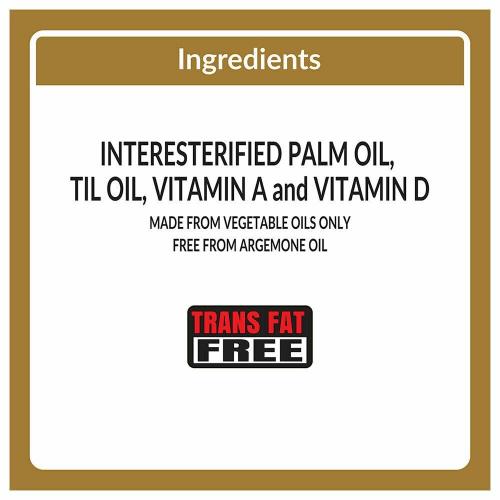 Palm oil, Palmolein Sesame Oil, Vitamin A & Vitamin D, Hydrogenated Vegetable fats.
