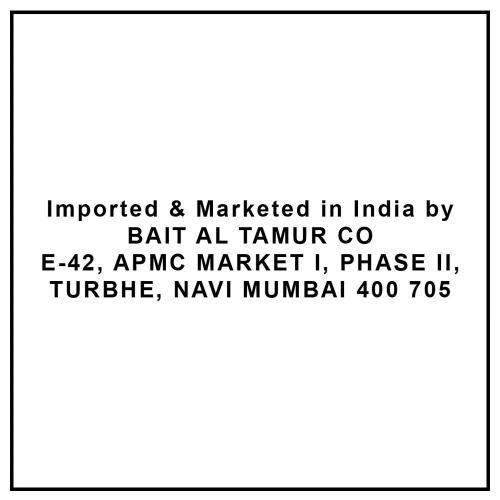 Name and Complete Address of the Manufacturer: Imported By :- Bait AL Tamur Co. E-42, APMC Market-I, Phase-II, Turbhe, Navi Mumbai, Maharashtra-400705.Fssai No,1151601700579,10016022005598