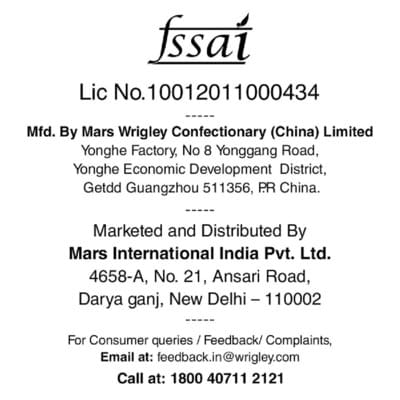 Name and Complete Address of the Manufacturer: Mars Wrigley Confectionary (China) Limited, Yonghe Factory, No. 8 Yonggang Road, Yonghe Economic Development District, Getdd Guangzhou 511356, PR China.Fssai No.10012011000434