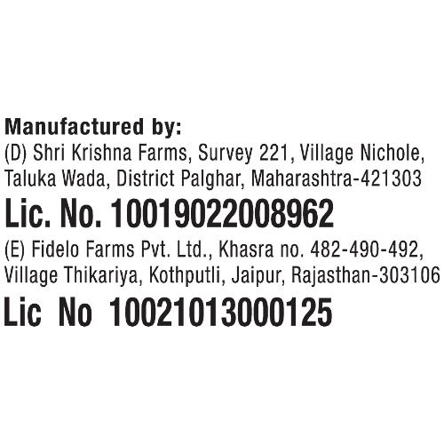 Name and Complete Address of the Manufacturer: Shri Krishna Farm 221/1, Nichole Village, Wada, Thane - 421303,Fssai No.10019022010155.10012022000264