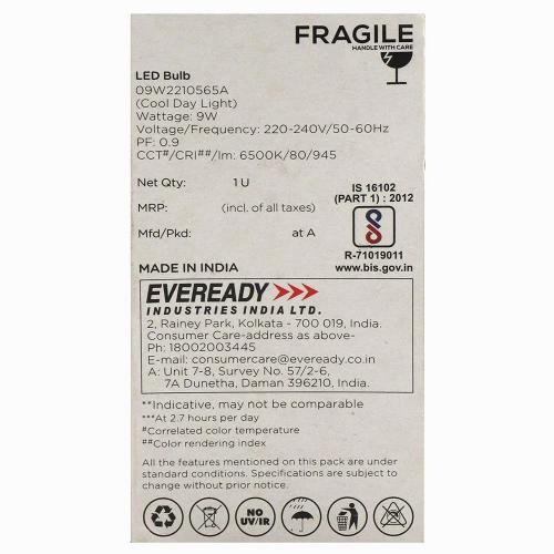 Name and Complete Address of the Manufacturer: Eveready Industries India Ltd. Jeevan Deep Building 1, Middleton Street, Kolkata - 700 071 West Bengal, India