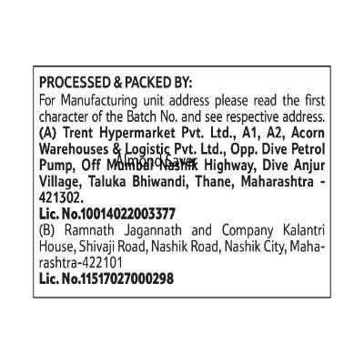 Marketed By , Address & Fssai: Trent Hypermarket Pvt Ltd.26th Floor,VIOS Tower, New Cuffe Parade, Sewari -Chembur Road,Wadala East, Mumbai - 400037 Fssai No. 10017022006910