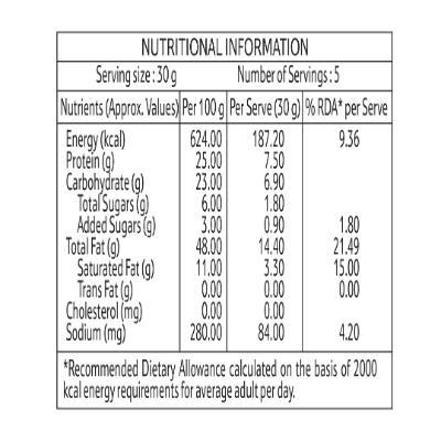 Per Serving Of 2 Tbsp 32G, Calories: 180% Daily Value, Fat: 15G 23%, Sodium: 140Mg 6%, Carbohydrate: 8G 3%, Protein: 7G, Iron 4%, Daily Values Are Based On 2000 Calorie Diet.