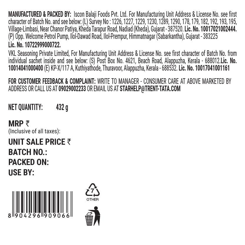 Marketed By , Address & Fssai: Trent Hypermarket Pvt Ltd.26th Floor,VIOS Tower, New Cuffe Parade, Sewari -Chembur Road,Wadala East, Mumbai - 400037 Fssai No. 10017022006910