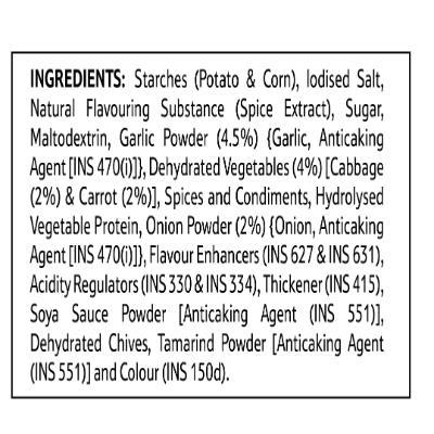 Milk Solids, Potato Flakes(Potato, Margarine, Salt And Turmeric), Salt Edible Starch, Sugar, Cheese Powder(5.8%), Sweet Corn(5.5%), Maltodextrin, Palm Oil, Black Pepper(1%), Spring Onion(0.4%)And Oregano(0.3%)Garlic, Thickener
