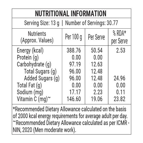 Mix 1tbps (13g) in a glass (150ml) of cold water. Mix. Add ice cubes and enjoy