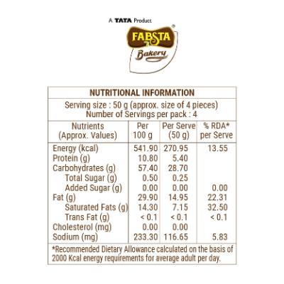 Fabsta Maska Khari 200G: Delightfully baked snack offering satisfying crunch and flavour. Pairs well with tea or coffee; handy for travel and tiffins. Freshness‑sealed packaging ensures longer enjoyment