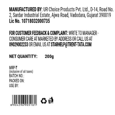 Marketed By , Address & Fssai: Trent Hypermarket Pvt Ltd.26th Floor,VIOS Tower, New Cuffe Parade, Sewari -Chembur Road,Wadala East, Mumbai - 400037 Fssai No. 10017022006910