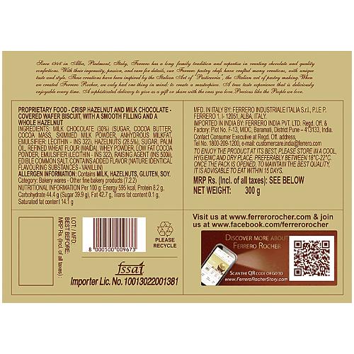 Features Elegant and delightful chocolate box, fine hazelnuts used, 300 gms box..Lifestyle Suitable For Vegetarians.Taggable Allergy Text Contains Milk, Hazelnuts, Gluten, so
