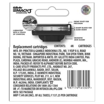 Gillette Mach 3 Charcoal Razor Blades Pack Of 4