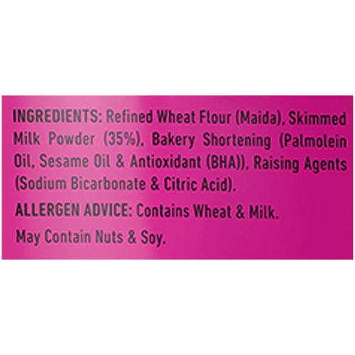 Wheat Flour, Skim Milk Powder (35%), Bakery Shortening, SodiumBicarbonate E (ii), Ctric Acid(E330) & PetmittedAnti-Oxidants E320, Bakery Shortening Used - Contains Trans Fats