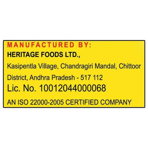 Name and Complete Address of the Manufacturer: Heritage Foods Ltd 6-3, 541/C Punjaguuta Telangana, Hydrabad -500082.Fssai No.10014047000258.10014044000848.10020022011405