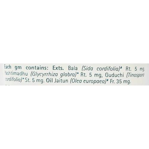 Country Mallow (Soda cord folia), Licorice (Glycyrrhiza glabra), Tinospora Gulancha (Tinospora cordifolia), Olive Oil (Olea European).