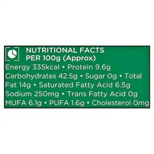 100% Whole wheat flour, Rice Bran Oil, Maida.