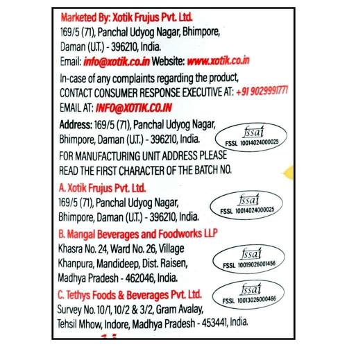 Name and Complete Address of the Manufacturer: B. MP Beverages Sinhagad Road, Pune 411041.Fssai No.10014024000025