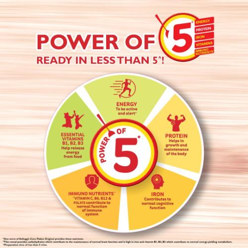 Kellogg'S Corn Flakes is high in Iron and Vitamins. It is a quick and convenient breakfast.
