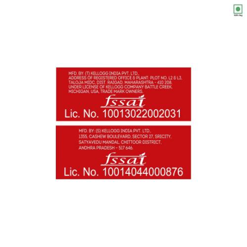 Name and Complete Address of the Manufacturer: Kelloggs India Limited Plot L2 ,L3, Taloja Midc, Dist Raigad, Maharshtra 410208, Fssai No.10013022002031.10014044000876