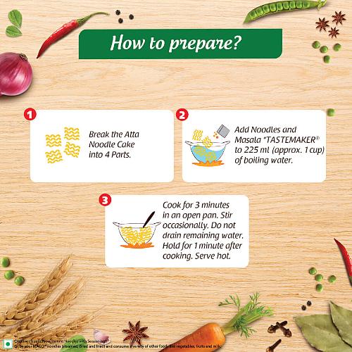 Add the tastemaker and noodles in 210ml boiling water. Cook for 2 minutes and it is ready to eat.