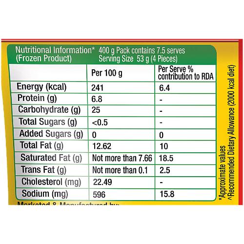 Name and Complete Address of the Manufacturer: Mc Cain Foods India Pvt Ltd, SH - 41, P.O. Baliasan, Mehsana - 382732, Gujarat, India FSSAI 10012021000242,FSSAI 10013011001570