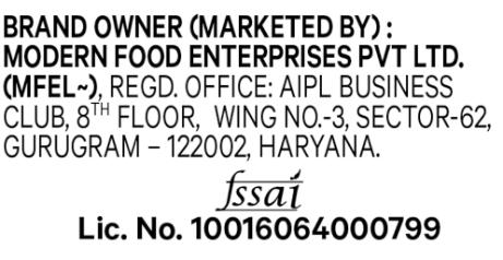 Name and Complete Address of the Manufacturer: Modern Food Enterprises Pvt. Ltd. Hindustan Unilever Ltd.(Mfel) Regd Office 205, 2Nd Floor Vipul Plaza, SuncitySector 54 Glof Course Road Gurugram -122002 Hariyan. Fssai No- 10013013000537
