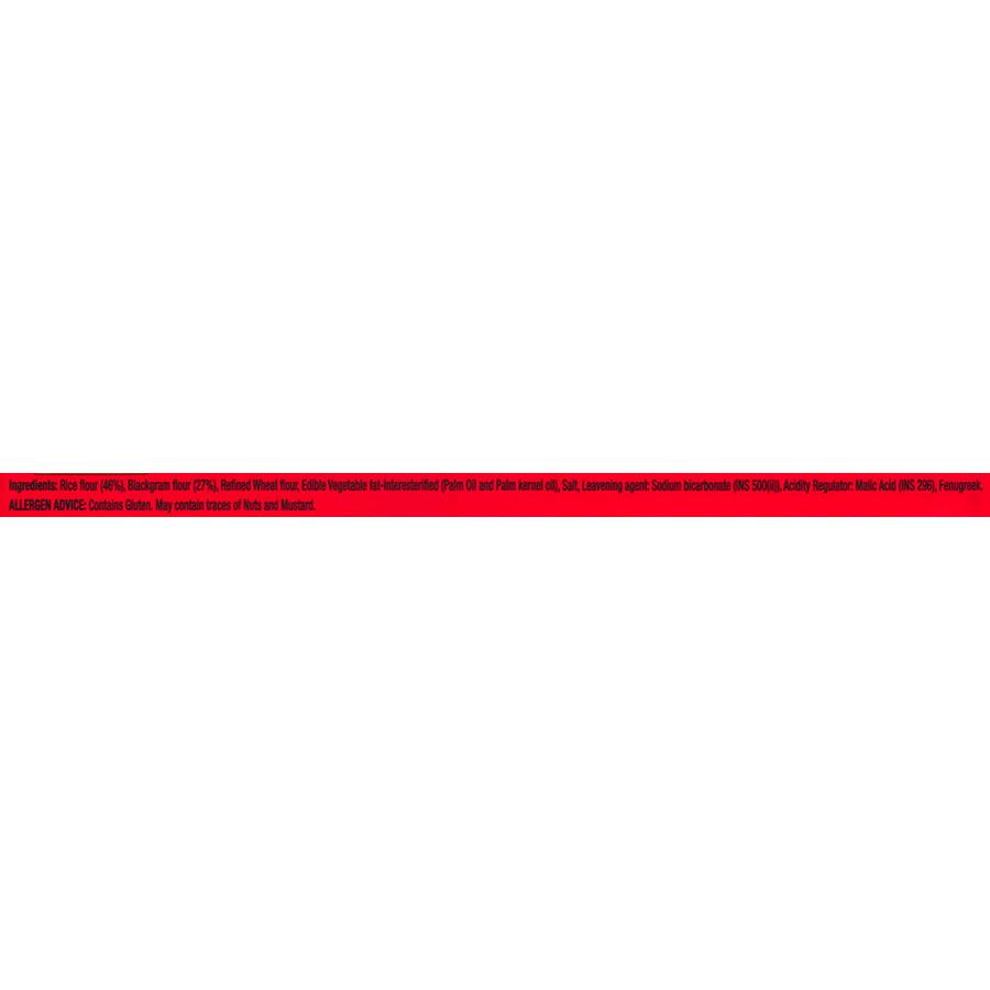 Rice (38%), Black gram Dal, Maida, Rice flakes, Edible vegetable fat, Salt, Raising Agent (INS500ii), Acidity Regulator (INS 296), Fenugreek.