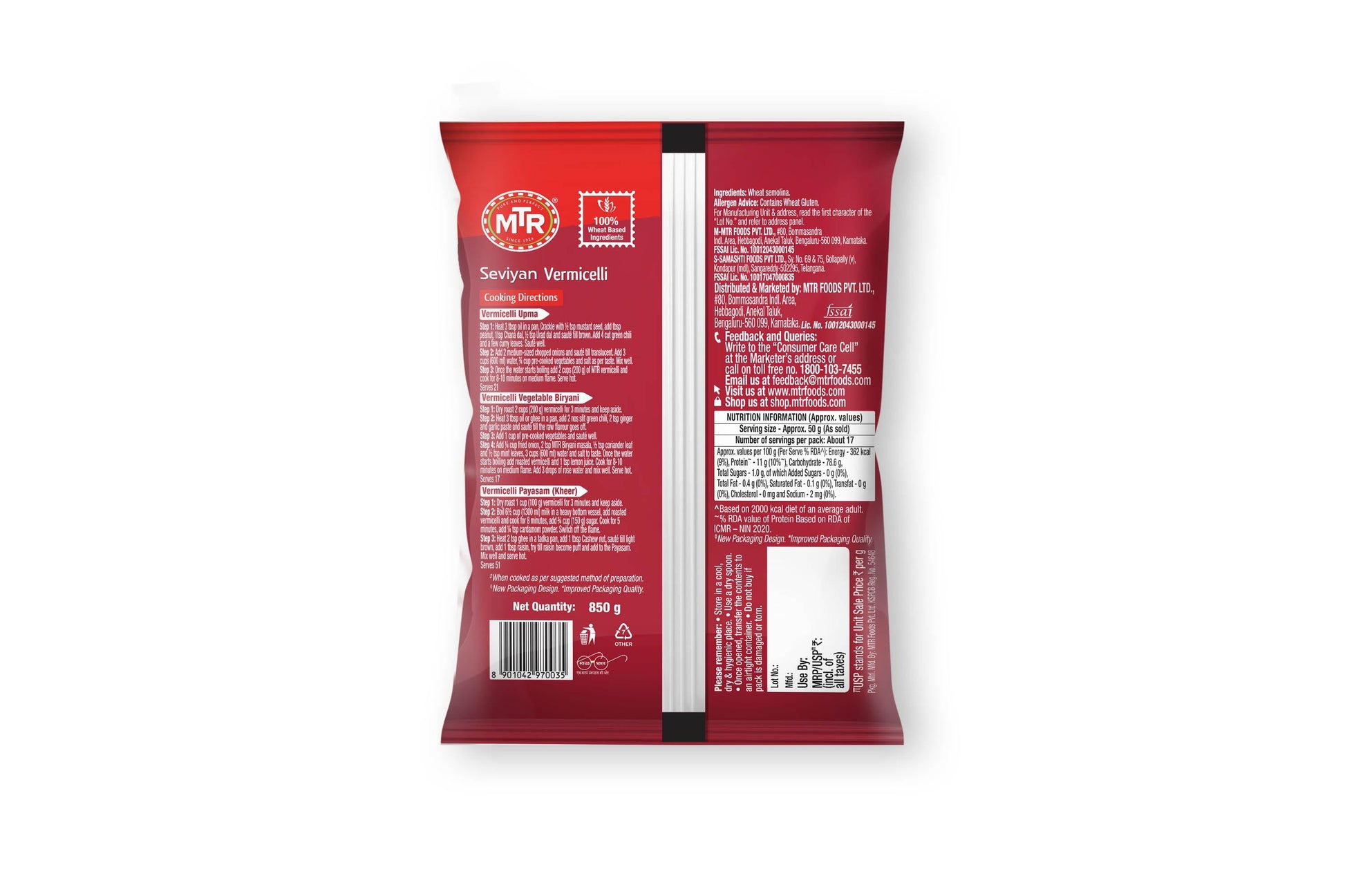 Name and Complete Address of the Manufacturer: MTR Foods Pvt. Ltd 80,Bommasandra Indl.Area,Hebbagodi.Anekal Taluk,Bengaluru-560099.Fssai no-10012043000145
