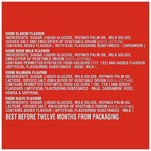 Parle Kismi Toffee contains elaichi (cardamom) and toffee caramel which are good for antioxidant and Diuretic Properties May Lower Blood Pressure,Contain Cancer-Fighting Compounds,Treat Bad Breath.