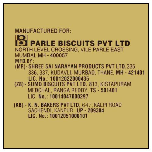 Name and Complete Address of the Manufacturer: Parle Products Pvt.Ltd.North Level Crossing,Vile Parle East,Mumbai-400057 Fssai No-10013022002253