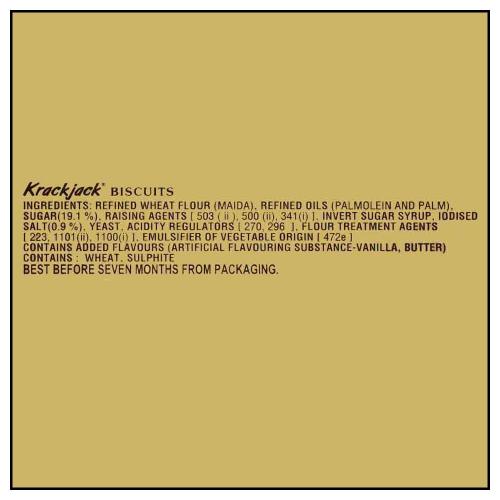 Parle Krack Jack Biscuit is a crunchy and tasty biscuit with an ideal balance of sweetness and saltiness. Once you begin relishing it, you won't be able to end. You will desire for more. Although Krackjack sweet and salty biscuits can be enjoyed anytime, it leaves wonderfully well with your evening cup of tea.