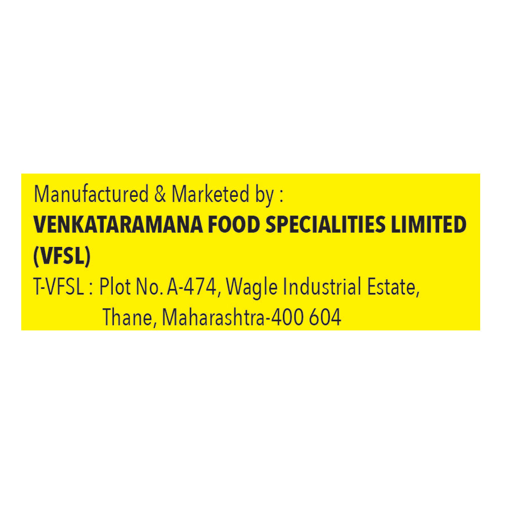 Name and Complete Address of the Manufacturer: Venkataramana Food Specialities Ltd,Plot No.A-474,Road No.34,Wagle Indl Estate,Thane-400604(MAH) Fssai No-11517014000375,11417670000220, 13515001000393,13318009000044,11217302000389,12419008000856