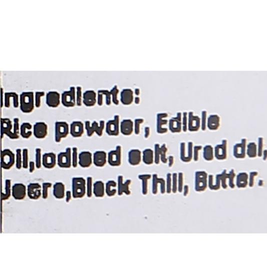 Rice flour, urad flour, Salt, Sesame Seed, Red Chilli Powder, Asafoetida, Edible oil.
