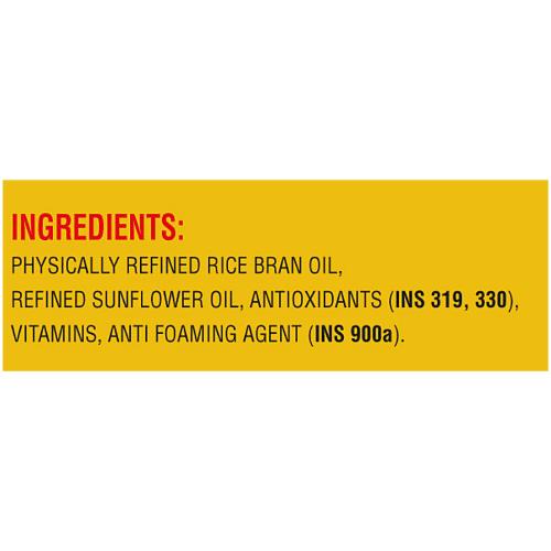 Refined Rice Bran Oil & Imported Refined Safflower (Kardi) Seed Oil H.O. Contains Permitted Antioxidants [319, 330] And Anti Foaming Agent |900A| Free From Argemone Oil. Fortified With Vitamins A And D.
