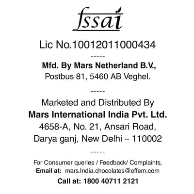Name and Complete Address of the Manufacturer: Mars International India Pvt. Ltd, Plot No. I-09-IIA, Khed City Industrial Area, At Post Nimgaon, Taluka- Khed, District. Pune - 410 505, Maharashtra, India. Fssai No:-10012011000434