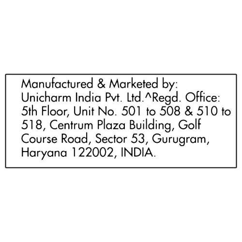 Name and Complete Address of the Manufacturer: Unicharm India Pvt. Ltd.^Regd. Office: Mt Floor, Unit No. 501 to 508 & 510 to 518, Centrum Plaza Building, Golf Course Road, Sector 53, Gurugram, Haryana 122002, INDIA.