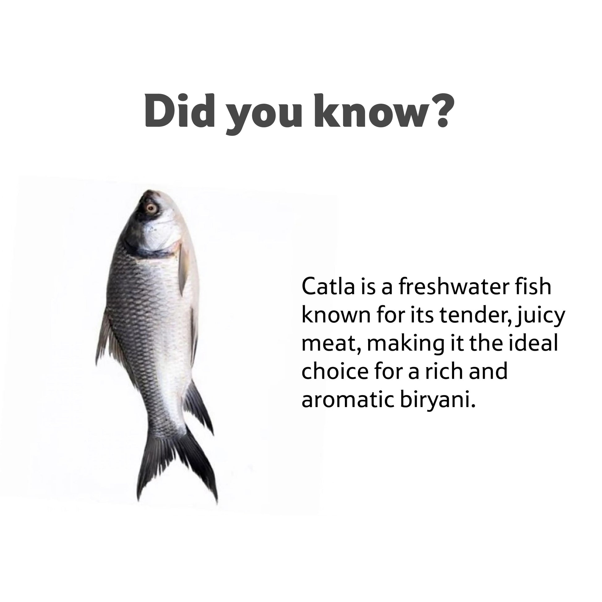 Catla fish is a commonly consumed by people from Bengal and Odisha , this fish praised for its high protein content and omega acid. They are generally prepared by frying or curry based.