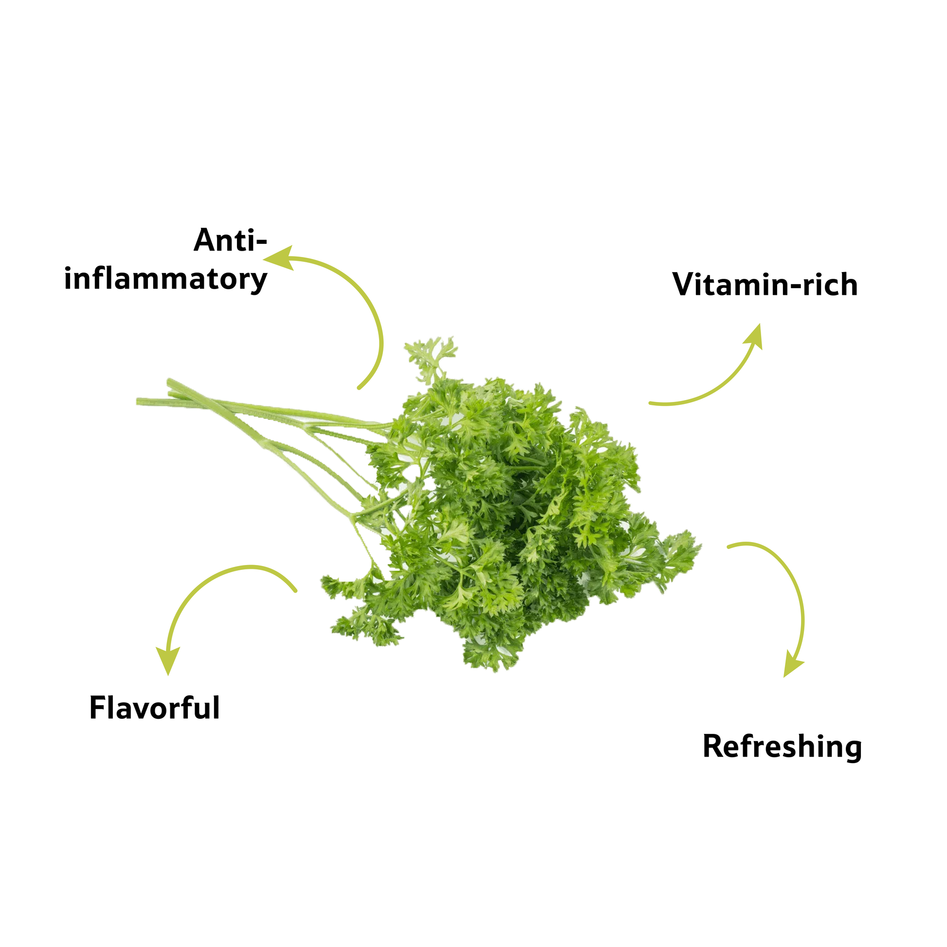 Bright And Fresh-Tasting, Parsley Is A A Tasty Addition To Your Soups And Stews. Healthy Leaves With Great Nutritional Features. Free From Harmful Pesticides, Chemicals. Add To Improve Flavour Of Food. It Has A Pleasant Grassy Flavour And Decorative Ruffled Leaves That Make It The Perfect Garnish.