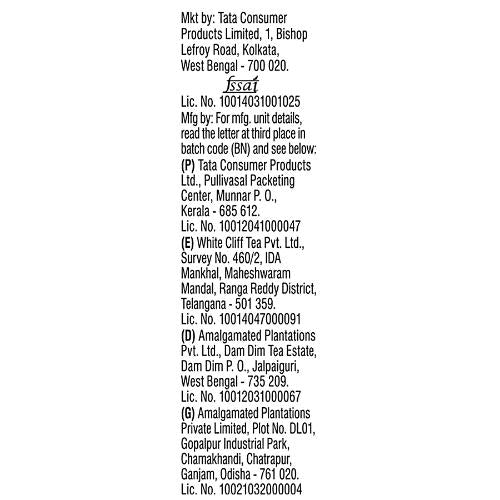 Name and Complete Address of the Manufacturer: Tata Global Beverages Ltd, 3rd Floor Kirloskar Business Park, Tower C, Hebbal, Bengaluru 560024.FSSAI No: 10014031001025