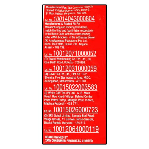 Name and Complete Address of the Manufacturer: Tata Global Beverages Ltd, 3rd Floor Kirloskar Business Park, Tower C, Hebbal, Bengaluru 560024.FSSAI No: 10014031001025