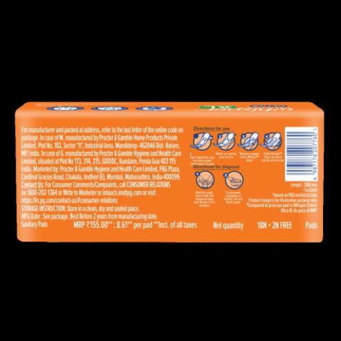 Contains magic gel which instantly converts fluid into a gel. Gives you leak-lock protection. Provides up to 100% stain protection. Wings ensure the secure placement of the pad. Feels soft against the skin.
