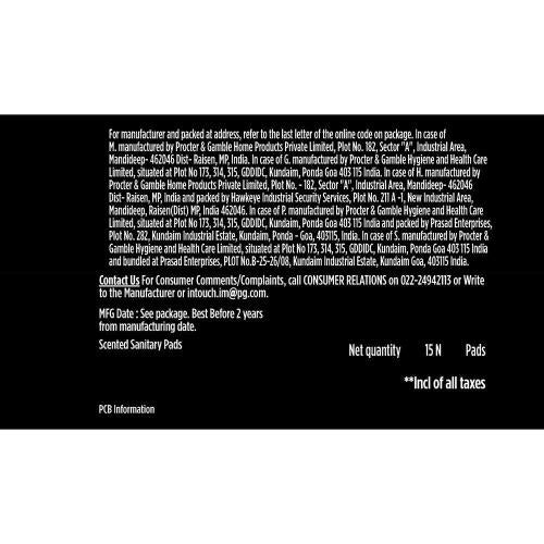 Name and Complete Address of the Manufacturer: Procter & Gamble Hygiene Healthcare Limited Plot No: 173, 314 & 315, Kundaim Industrial Estate, Kundiam, Goa - 403115.
